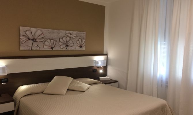 Camera doppia (letto matrimoniale o due singoli a richiesta) dotata di pavimento laminato essenza legno, aria condizionata, materassi ortopedici, Wi-Fi, TV a schermo piatto, bagno completo con asciugacapelli e doccia.