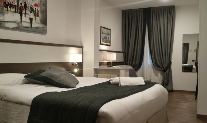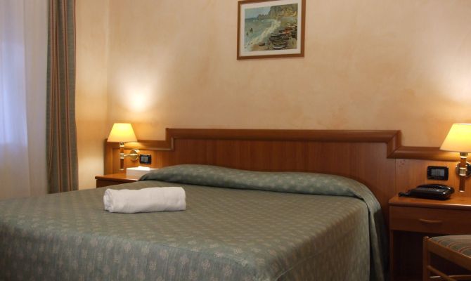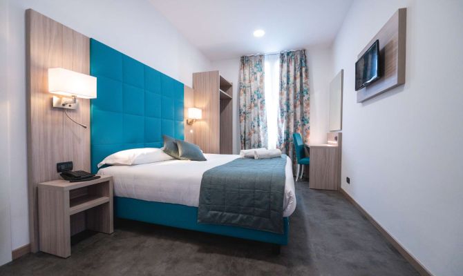 Camera per due persone con bagno. Ideale per soggiorni brevi, la nostra tipologia basic, è quella più economica. Dotata di aria condizionata, connessione Wi-Fi, TV a schermo piatto.